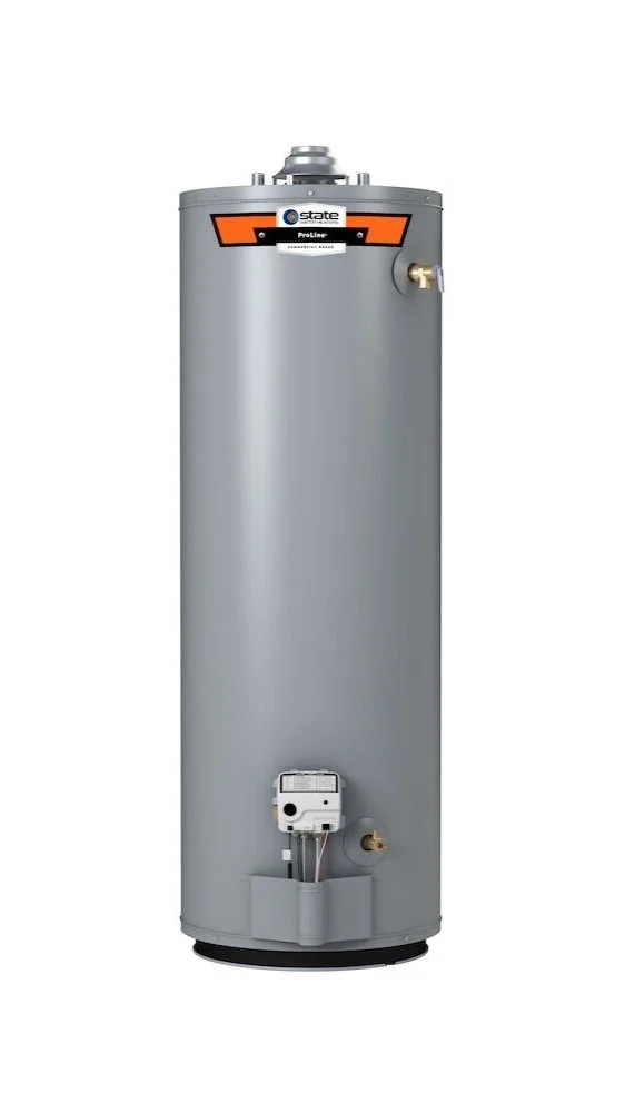 Traditionally, most water heaters in the home are tank type water heaters. The most typical types are gas (natural or LP) or electric (240V). Typical sizes include, but are not limited to 40 gallon, 50 gallon, and 75 gallon. Due to space constraints there are also some common types of electric heaters known as “shorts” or “low boys” which are shorter than the standard 50 gallon.